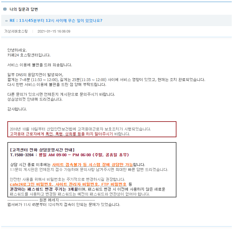 ÃßÄ£: ¹®Á¦ ¿øÀο¡ ´ëÇØ¼ cafe24 ¾÷ü¿¡¼ ´äº¯ÀÌ ¿Ô½À´Ï´Ù.