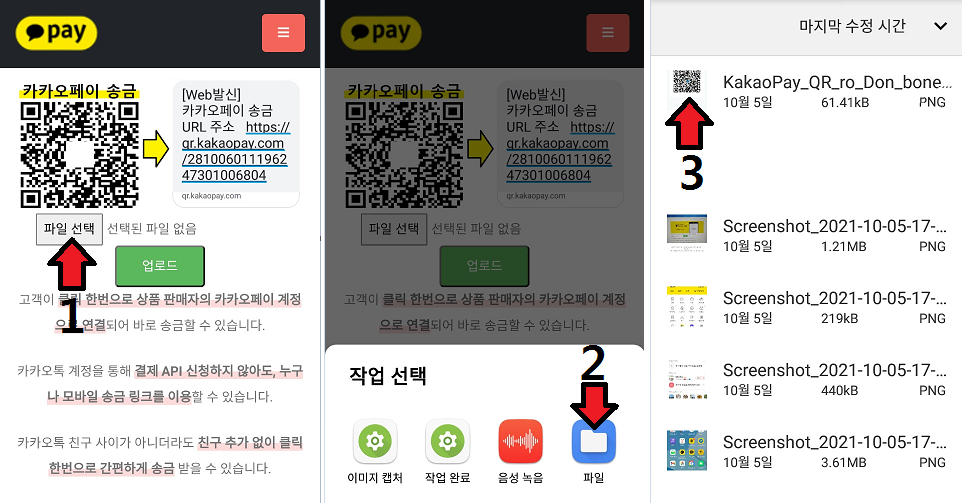 파일 선택에서 카카오페이 QR 코드 이미지 파일을 선택합니다.