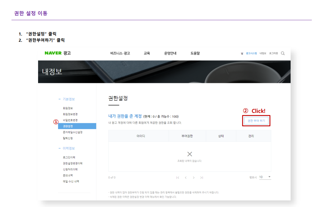 ³»Á¤º¸ ±âº»Á¤º¸¿¡¼ ±ÇÇѼ³Á¤À» Ŭ¸¯ÇÕ´Ï´Ù.
